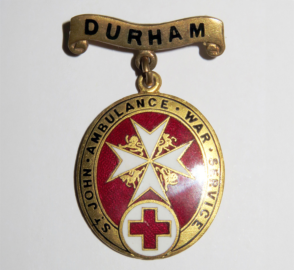 The Badge features a suspended bar with the county name “DURHAM”, denoting the holder’s county of origin. Other examples of this Badge feature not only counties within the United Kingdom but also countries throughout the Empire with established St John Ambulance units. The reverse of the Badge has the stamped serial number “4930”.