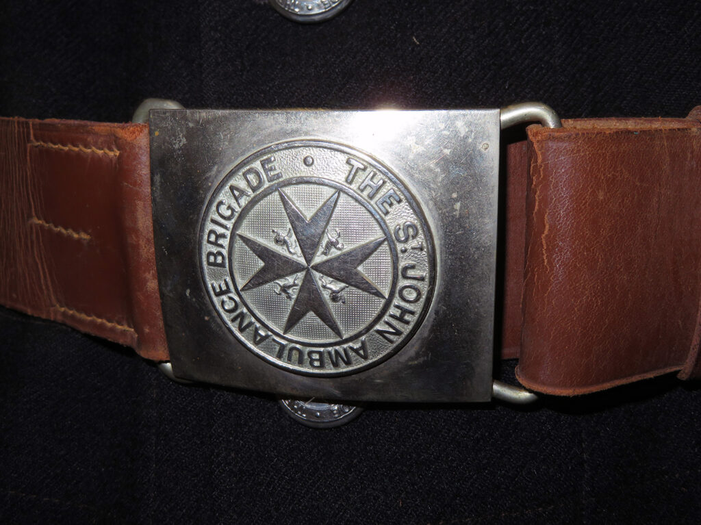 The St. John Ambulance Brigade rank insignia, worn on the shoulder straps, are missing, so we do not currently known what rank Percy G. Lumbers held.