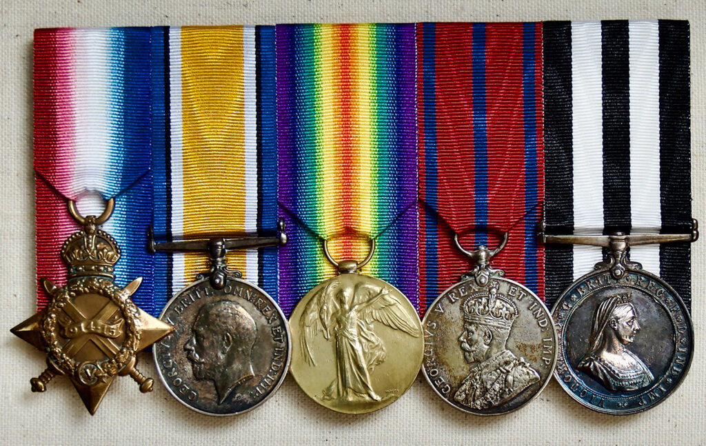 His family has kept his medals, which were: the 1914-1915 Star, the British War Medal, the Allied Victory Medal, the 1911 Coronation Medal for St. John Ambulance, and the Service Medal of the Order of St. John.